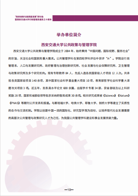 由西安交通大学公共政策与管理学院主办的院庆二十周年系列活动之:“政府创新与高质量发展”学术研讨会——暨西安交通大学行政管理系建系三十周年纪念活动将于2024年10月26日(周六)在陕西西安中国西部科技创新港举行。