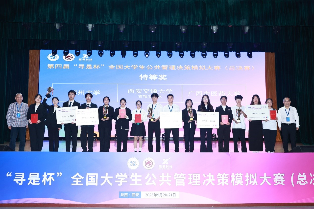 2025年9月20日至21日,第四届“寻是杯”全国大学生公共管理决策模拟大赛(总决赛)在西安交通大学举行,来自全国98所高校的400余位师生参赛,16位公共管理学科的知名专家学者担任大赛评委。本次大赛由教育部高等学校公共管理类专业教学指导委员会指导、中国科学学与科技政策研究会主办、中国科学学与科技政策研究会公共管理专业委员会协办、西安交通大学公共政策与管理学院承办。