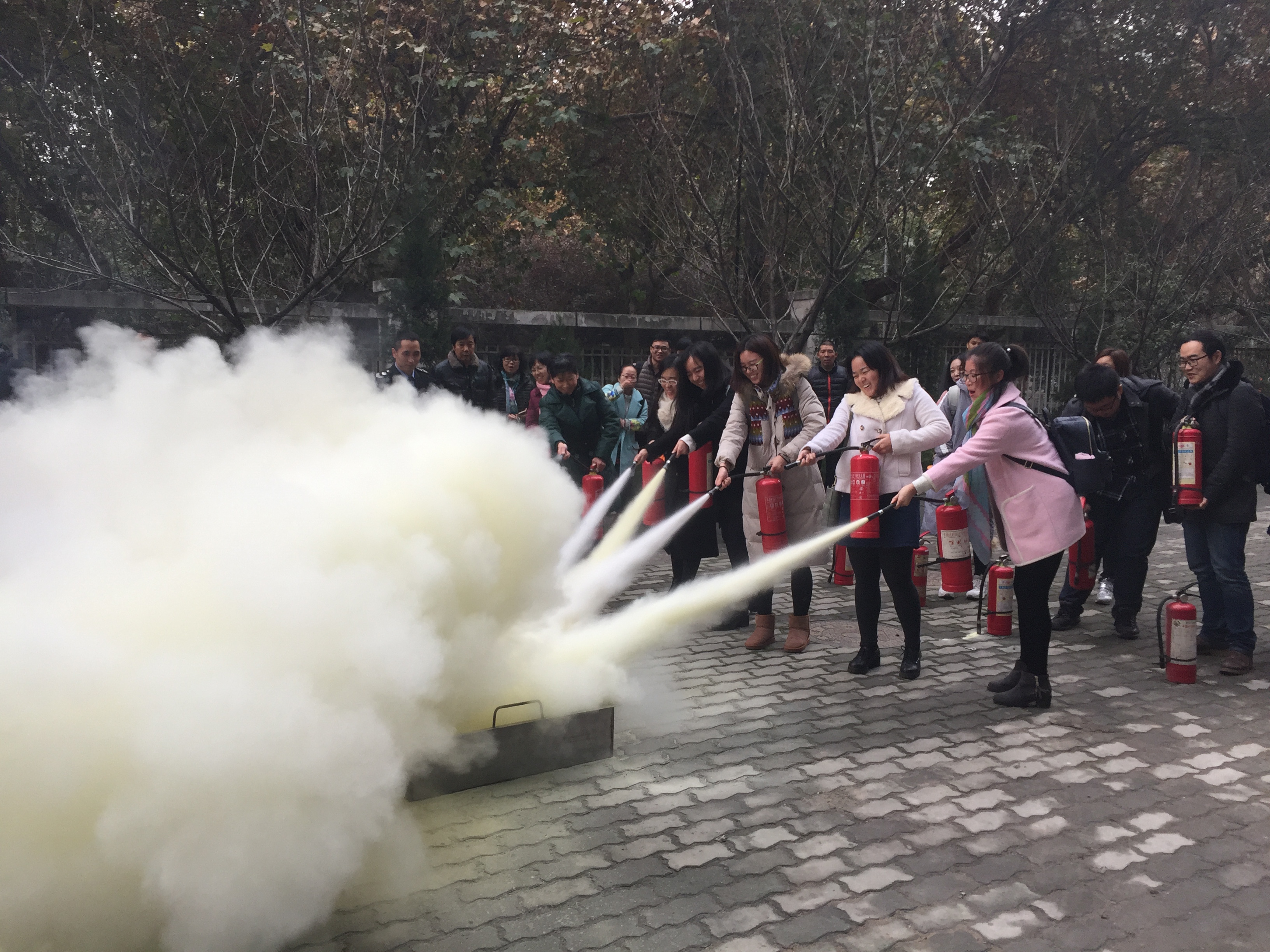讲座以几起结局惨痛的火灾案例开始,顿时把大家的注意力集中起来,讲座中王老师以一个个鲜活的案例、一张张令人心痛的画面向我们展示了火灾给人们生命财产造成的巨大伤害,王老师尤其强调遇到火灾时正确的灭火方法和逃生技能十分重要,许多悲惨的结果都是因为不具备必要的消防安全常识导致的,这其中包括如何正确的报警,看似简单的动作在突发情况时的作用十分重要。同时,王老师还就如何正确使用消防工作给大家做了正确展示,包括灭火器、防毒面具的使用。讲座结束后,王老师指导师生们进行了消防演习,主要时正确使用灭火器进行灭火。