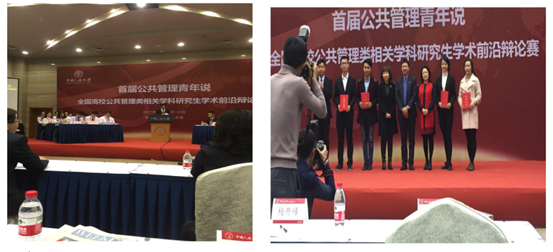 2017年11月11日-11月13日,首届公共管理青年说——全国高校公共管理类相关学科研究生学术前沿辩论赛在中国人民大学举行。该赛事由中国人民大学公共管理学院、北京大学政府管理学院、北京师范大学政府管理学院联合主办。三十六所高校的研究生代表齐聚人大,以辩会友,共同探讨公共管理领域前沿的学术问题。我校作为联盟受邀高校之一参与了此次活动,王薇然、姜姗、李石花三位同学在研会主席吴佳的带领下代表西交公管学院参赛。这次辩论赛,我院是8个受邀的理事会单位,并与中国科学院大学、中国社会科学院大学联合组队,展现了西交公共管理人才培养的综合风貌。同时,参加了公共管理类高校的研会主席论坛,就学生领导力的相关问题进行了交流,是我院团工委工作“走出去”的重要体现。