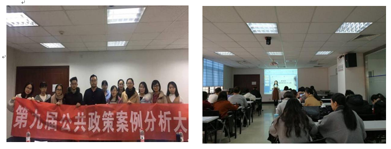 在团工委的指导下,2017年12月28日学院研究生会举办第九届公共管理案例分析大赛,我院人口所刘慧君老师,社保系温海红老师,胡书孝老师,行管系白萌老师,郭雪松老师应邀作为评委出席比赛,比赛队伍由来自全日制学术研究生、MPA和本科生共11支代表队组成。
