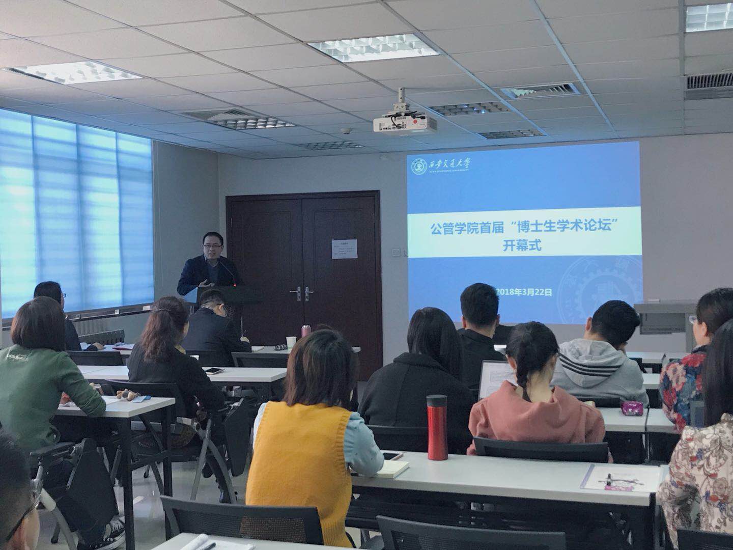 2018年3月22日下午,公管学院首届“博士生学术论坛”在实验中心学术厅开幕。公管学院执行院长杜海峰、副院长周忠良、副书记王立剑以及博士生导师郭雪松、阎波等参加了开幕式,并对博士生报告进行了点评和指导。