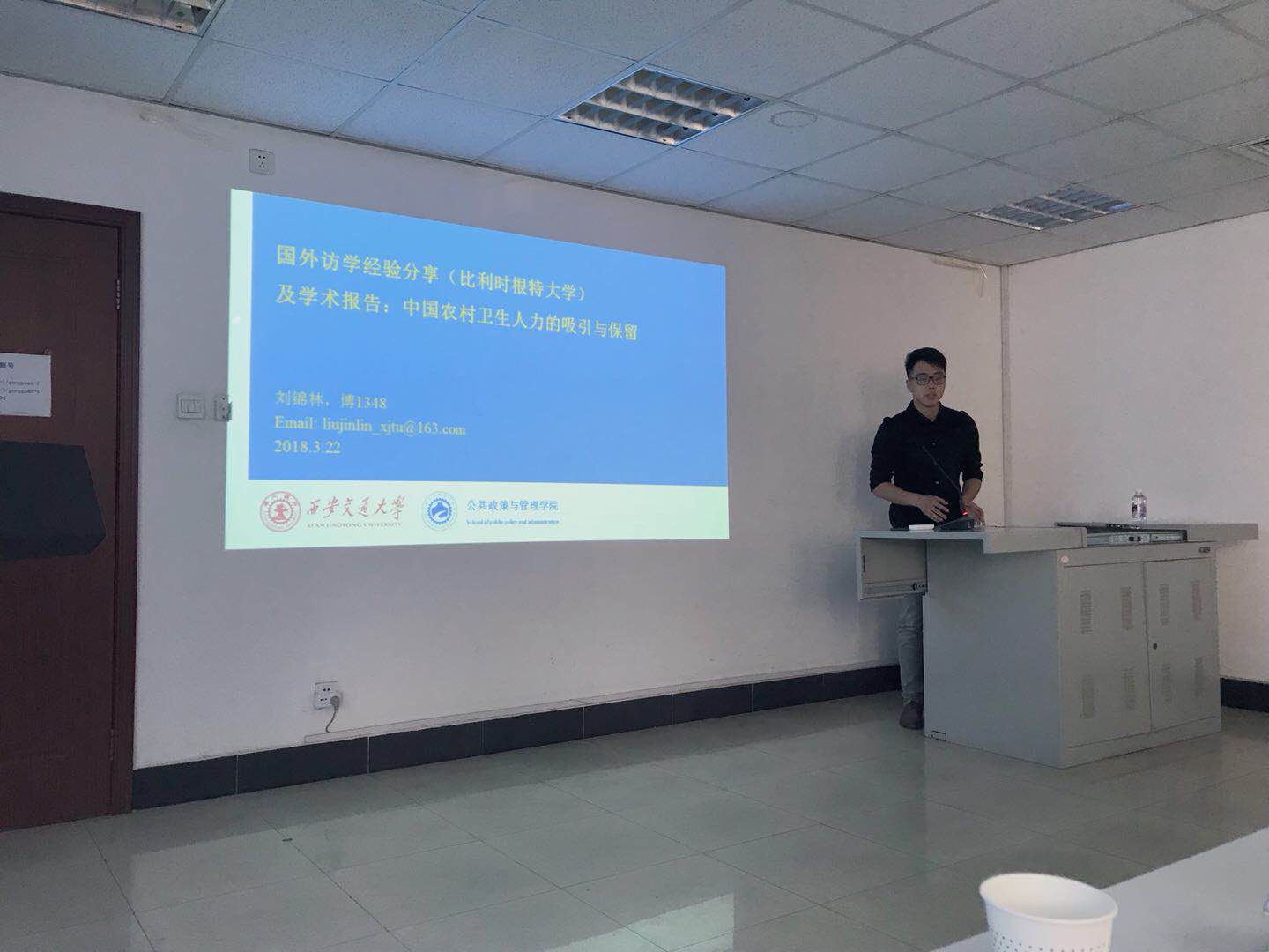 2013级博士生刘锦林同学为大家作了题为“中国农村卫生人力的吸引与保留”的学术报告。刘锦林同学于2017年在比利时根特大学留学一年。周忠良教授及各位同学就调查原始数据的清洗与应用、关键指标的选取展开了激烈的讨论。之后,周忠良教授就刘锦林同学的汇报进行总结,他提到在科研中,为保证研究的可持续和深入,要结合实际,从长远角度思考研究吸引卫生人力的措施。