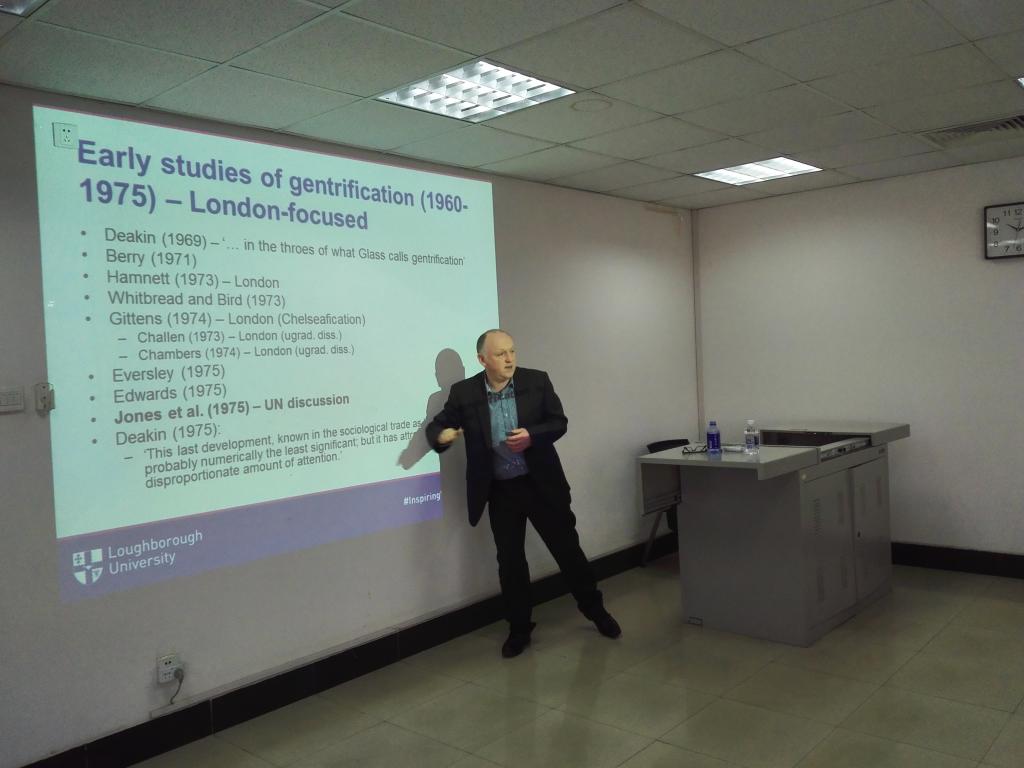 在开展本次“聚焦教育驱动中产阶层化研究”的学术交流之际,我院邀请Chris Hamnett和Darren Smith院士在3月21和22日分别为西交大师生做了两场主题报告。在Chris 的主题报告“Ethnicity, Education, Attainment and School Choice in London”中,他解释了伦敦种族与教育、教育成就与择校现象及其驱动机理和社会后果;Darren Smith在主题报告“Global Gentrification”中阐述了中产阶层全球化的特征、历史渊源、现今趋势及其研究发展。