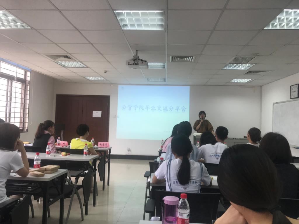 为加强我院博士、硕士、本科不同年级,不同系所同学之间关于学习、生活、娱乐、就业等方面的沟通交流,公管研会在学院的支持与指导下,着眼于办同学最需求的社团活动,创新开展系列活动。经过前期积极广泛调研,5月31日下午在公管实验中心成功举办了主题为“遇见更好的自己——经验分享,期许未来”的毕业交流分享会。李雯老师、肖瑶、王焕、杜永新、郭丽姣、崔仲飞、赵星宇、王安琪、杜佳原等师兄师姐参加此次活动,为即将就业的低年级同学未来的求职传授经验、答疑解惑。