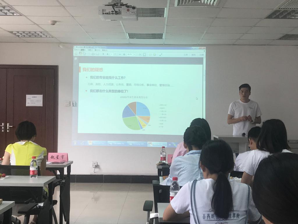 此次就业分享会来自于我院学生提议,院研会积极响应建议。公管研会主席谢振在发言中如是说,研会始终坚持办学生群体最需求的社团活动,做好我院双一流建设过程中的服务者,一步一个脚印,将公管研会发展的更好,将学生活动办的更好。