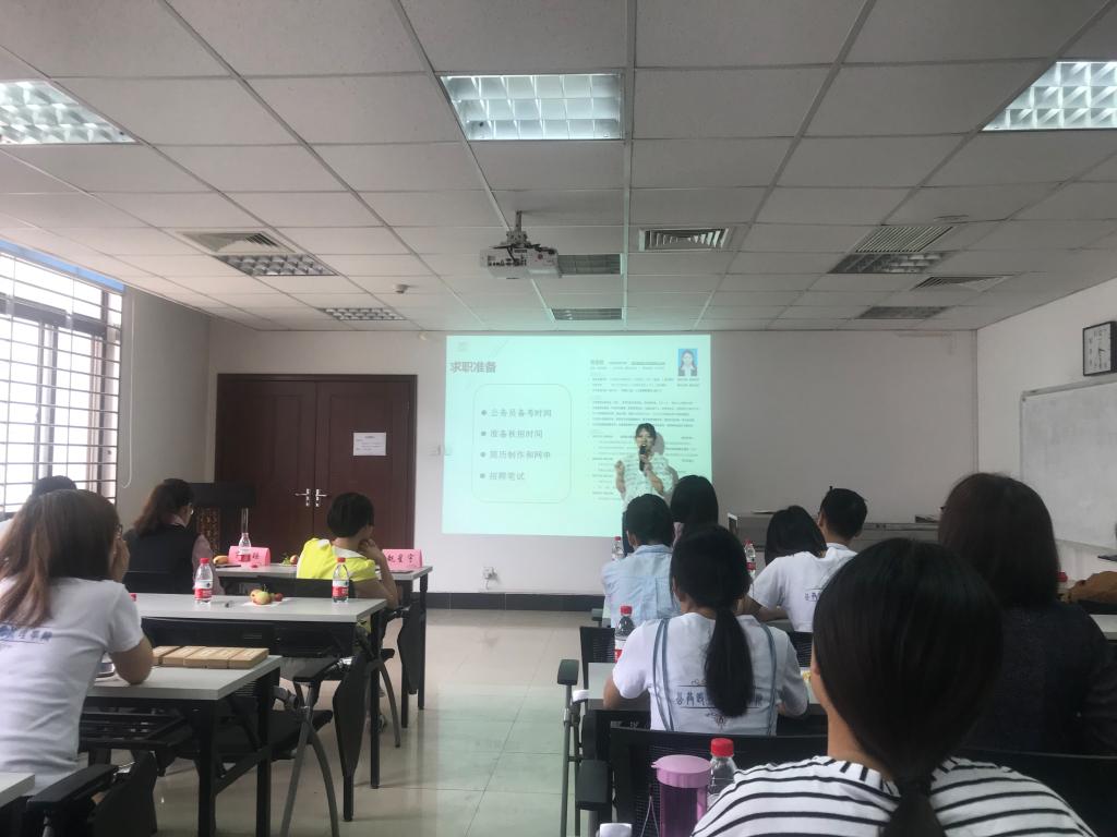 随后,肖瑶、王焕、杜永新三位师兄师姐分享了自己的就业经历;郭丽姣师姐、崔仲飞师兄作为选调生的代表分享了自己的求职经验。短短的两个小时,师兄师姐们从实习的经历、社团活动的经历、正式求职的经历、自己在求职过程中的亲身感悟及经验,还有求职注意事项等等多个方面讲述了自己的就业之旅,干货十足。从他们的讲述中,同学们感触颇深:一、要清楚自己想要的是什么。,清楚方向后才有目标努力。比如在求职中,我们应该考虑进什么行业、在本行业中哪个企业比较有潜力和好的发展前景、对于招聘的岗位个人是否喜欢和能否胜任的事宜。二、凡事要早做准备。正如古人所言“凡事预则立,不预则废。”完全的准备是为了确保在与别人的竞争中多一份胜出的把握。如果想考公务员、选调生,就早些看关于形势与政策的书籍,平日多关注些时事政治新闻;想进企业,就在平时多去找一些实习,积累经验、提升能力;想投身科研,就找准方向、多读文献,对自己研究的问题多进行些深入思考,多和老师和师兄师姐同学们交流。三、面试是个人综合实力全面考察,师兄师姐给我们分享了很多面试技巧和要点。在简历制作中一定要专业,把自己的岗位和职责相匹配,学会用数字突出自己的优势。在自我介绍中,要准备不同时长的自我介绍做到有备无患,与简历遥相呼应,引导面试官向你熟悉的领域发问。在群面中,要注意团队协作,群面是团队精神的展示,找准最适合自己的角色,切记不要陷入无休止的争论中。