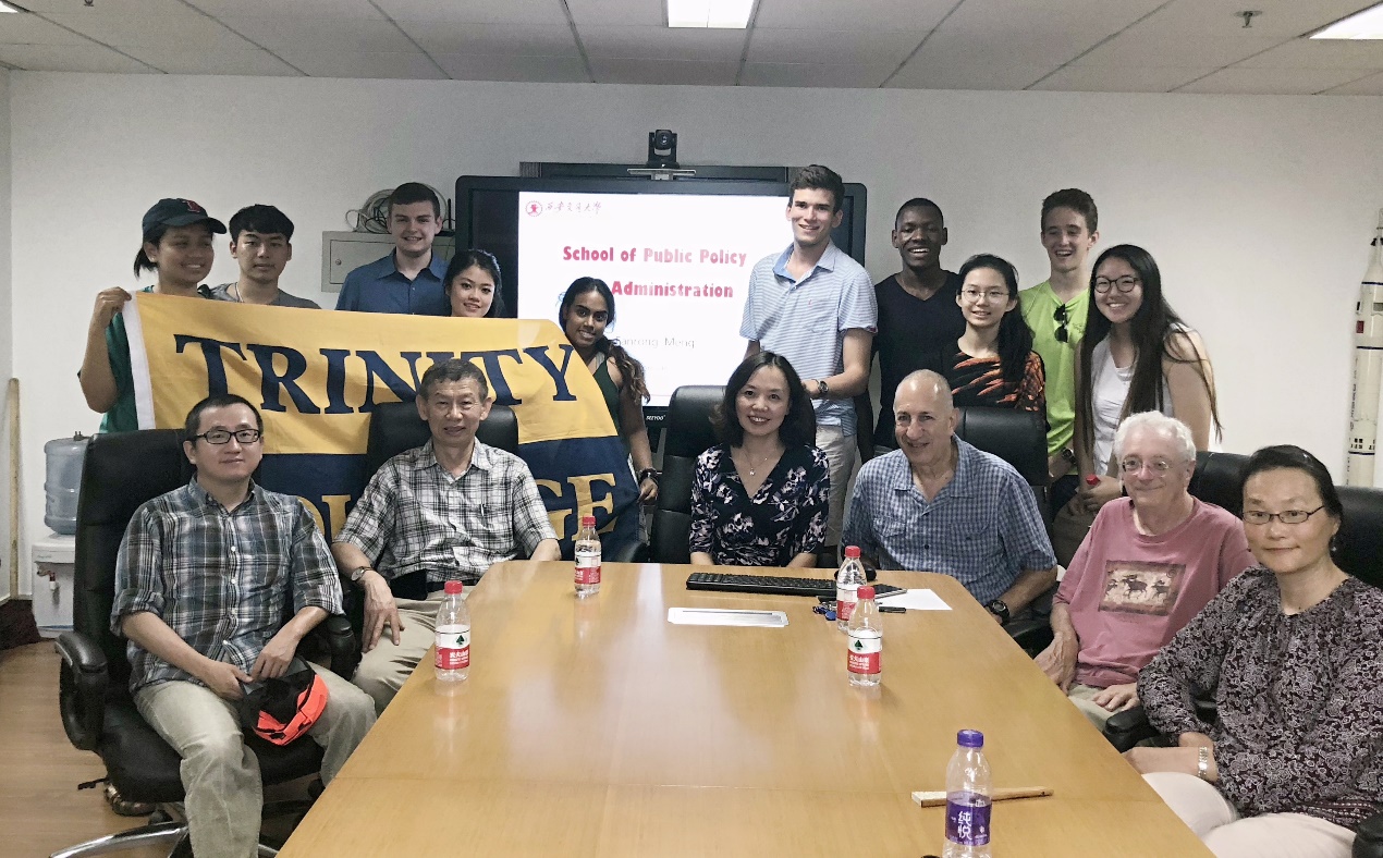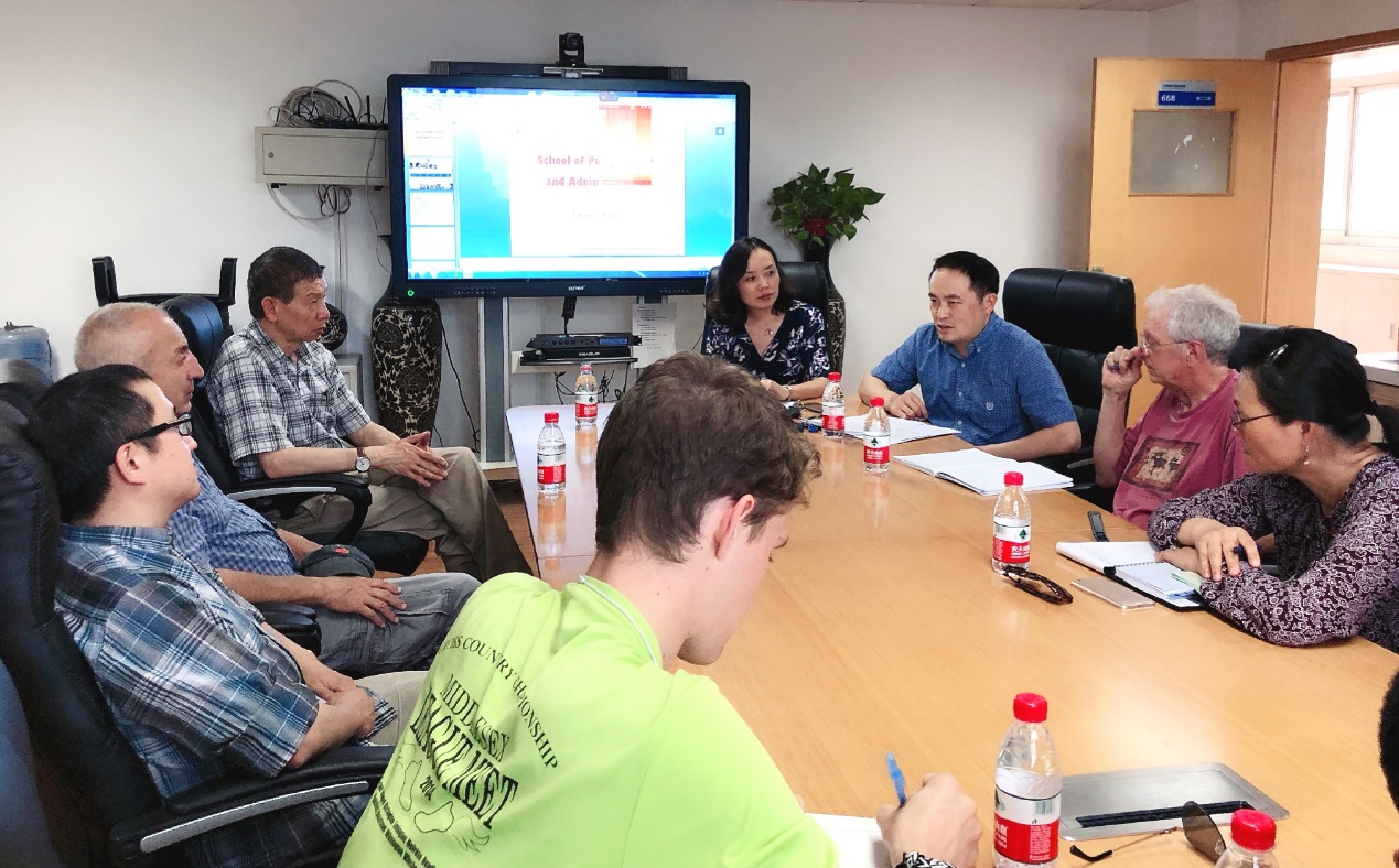 6月15日下午,美国三一学院(Trinity College)丝路考察团访问我院,我院副院长周忠良教授与行政管理系孟凡蓉副教授接待了代表团。此次丝路考察团由五名教授和十一名学生组成,期望通过走访北京、西安、敦煌、伊宁、霍尔果斯和喀什等丝路沿线城市了解中国的发展;从城市历史、经济发展、 城市规划、城市治理、一带一路,水资源的治理利用和环境保护等方面来看中国改革开放后发展变化及伟大成果。