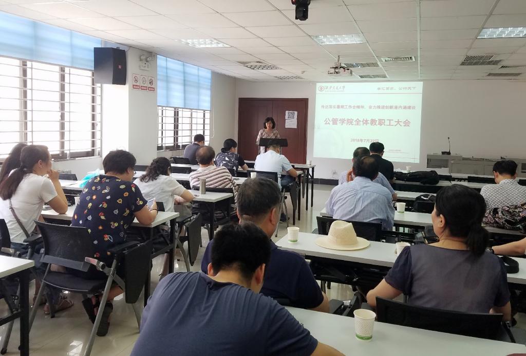 7月22日下午,公管学院再次召开全体教职工大会,传达落实暑期工作会精神,奋力推进创新港内涵建设,大会由王立剑副书记主持。