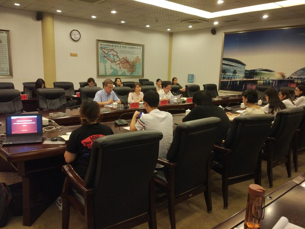 6月28日上午,在西安国际港务区规划馆会议室举行了关于本次见习的对接会,参加会议的主要负责人是西安交通大学公共政策与管理学院副教授暨行管51班班主任阎波、西安国际港务区管委会组织人事局副局长孙春宁。除此之外,还有港务区管委会组织人事局干事何芳,其他部门与见习相关的部门工作人员,以及行管51班全体见习学生。
