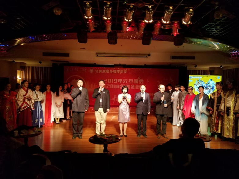 改革开放四十年,奋勇拼搏再出发,迎着新年的钟声,公管学院2019年元旦晚会暨2018级迎新晚会于2018年12月28日晚在南洋大酒店圆满举行。院党委书记薛宇红,执行院长杜海峰,副院长董新宇、周忠良,工会主席杨东朗等学院领导及各系所老师、研究生、本科生、各兄弟院系学生莅临参加。