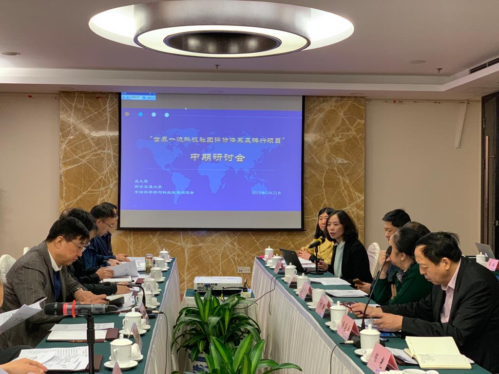 3月23日上午,“世界一流科技社团评价体系及排行榜项目”中期研讨会在中国科技会堂召开。中国科协书记处书记宋军出席会议,科协学术部副部长陈锐及相关工作人员,中国科学学与科技政策研究会名誉理事长方新、理事长穆荣平,中科院管理创新与评估中心、国家科技评估中心、军事科学院评估论证中心、北京理工大学等单位的专家学者,中国科协学会服务中心、公路学会、机械工程学会、药学会、农学会等相关负责人,以及西安交通大学课题组主要成员参加会议。中国科学学与科技政策研究会秘书长陈光主持会议,项目负责人西安交通大学绩效管理研究中心执行主任孟凡蓉教授作课题汇报。