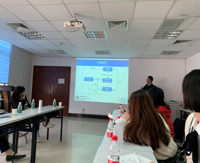 之后在公管学院教学实验中心学术厅,面向学院本科生举行了2019年香港教育大学公共政策夏令营宣讲会,会议由董新宇副院长主持。宣讲会开始,和老师播放了2018年公共政策夏令营的宣传短片,向同学们直观地展示了夏令营丰富多彩的活动,接着他详细介绍了2019年香港教育大学公共政策夏令营的具体日程安排。宣讲会最后,同学们与和老师深入互动,更加全面深刻的了解了夏令营的情况。