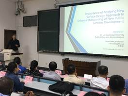 李清宏副教授做了一场关于应用新的服务设计方法加强新公共服务外包重要性(Importance of Applying New Service Design Approach to Enhance Outsourcing of New Public Services Development)的主题学术报告。他从服务经济与工业4.0革命的背景、基于需求驱动方法演示的设计问题、服务设计的实用案例、智慧城市的新设计理念等四个方面介绍了设计在公共服务领域的重要性。他以新加坡超级树公园为例,介绍了创新设计在构建智慧城市和促进经济发展中的重要作用。与会的留学生们也就主题内容进行了热烈的讨论。