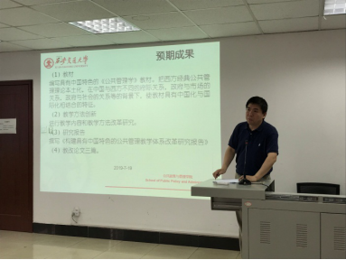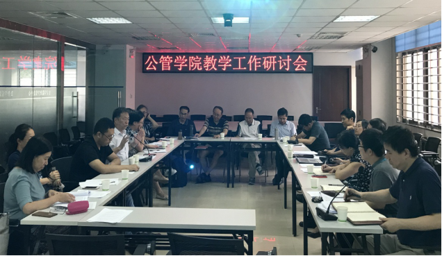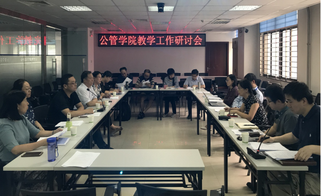 公管学院于2019年7月19日下午2点30至5点30在教学实验中心学术厅成功举办教学工作研讨会,主要就学院一流专业建设、课程建设、教材建设、教学改革以及立德树人工作进行研讨。学院党委书记薛宇红、执行院长杜海峰、副院长董新宇、党委副书记王立剑、特邀专家张思锋教授、朱正威教授以及学院部分教师出席了工作研讨会,会议由副院长董新宇教授主持。