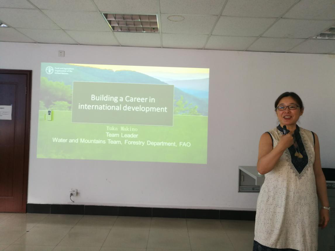 访问期间,Yuka Makino博士分别于7月22日和26日下午2:30至6:30在公管学院人口与发展研究所做“人口与发展政策大讲堂”第五十一期系列讲座。讲座题目分别为“国际发展与环境”(International Development and Environment)、“国际发展领域的职业发展”(Building a Career in International Development)、“粮农组织山区可持续发展项目”(FAO Program on Sustainable Mountain Development)和“山区韧性发展”(Resilient Mountain Development)。