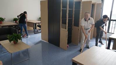为保障新生顺利入驻创新港,公管学院工会及团工委已经组织师生全面完成清扫工作,老师办公室、研讨室、谈心室、会议室、研究生机位等设施均已全面安置到位,做好迎接新同学开启新港新学期的各项准备。
