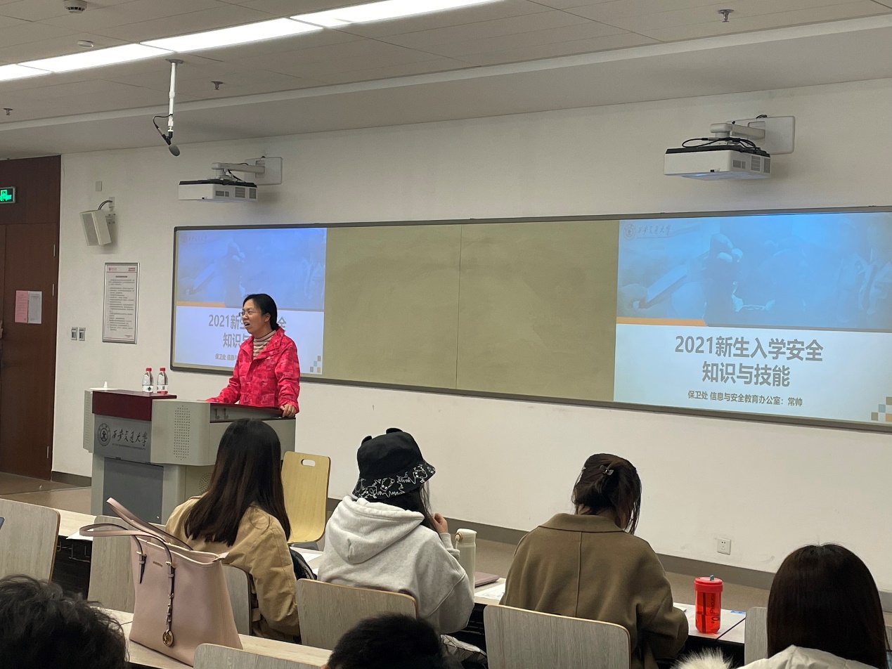 为了使同学们树立并强化安全意识,提高风险的应对防范能力,11月17日下午公管学院联合保卫处在创新港涵英楼开展了“2021新生入学安全知识与技能”讲座。讲座由公管学院实验室副主任王丽娜主持,保卫处信息与安全教育办公室常帅老师主讲,学院全体研究生新生参加。