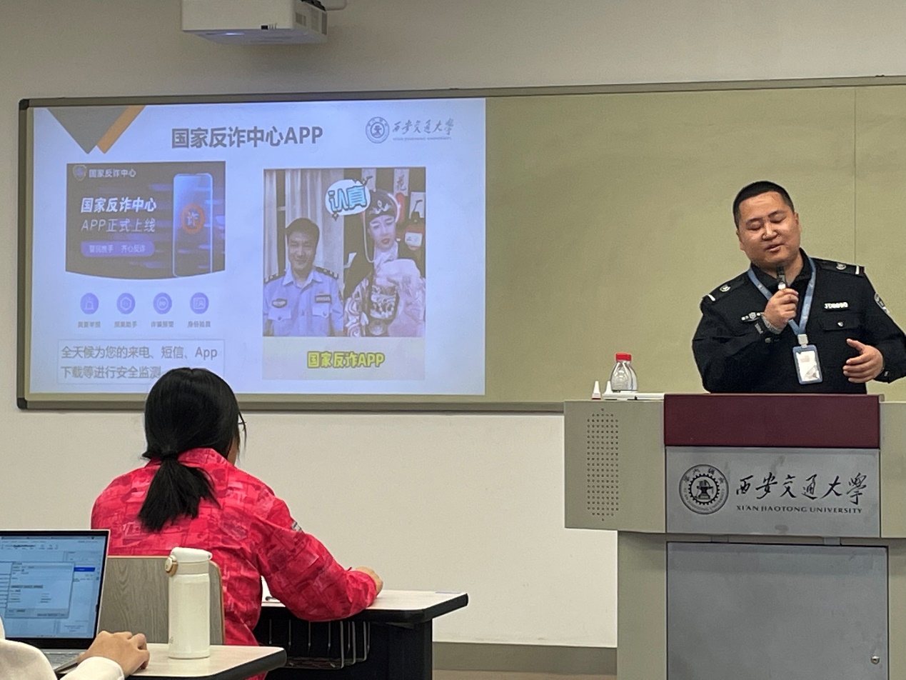 讲座伊始,常帅老师展示了改编自三国演义《空城计》的幽默短片,通过诙谐幽默的方式让大家认识到电信诈骗的概念。电信诈骗相比于传统诈骗危害性更强,影响范围更广。常老师用生动的语言介绍了发生在校园内的真实诈骗案例,一一讲解常见的校园电信诈骗手段,包括“影响征信”类诈骗、刷单诈骗、快递丢失诈骗、“裸聊”诈骗等,对骗子经常采用的话术和诈骗手段也进行了讲述。他呼吁同学们应对电信诈骗要做到不听、不信、不转帐,并安装国家反诈中心APP,打击电信诈骗行为,共同守护个人和国家安全。