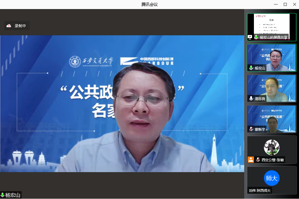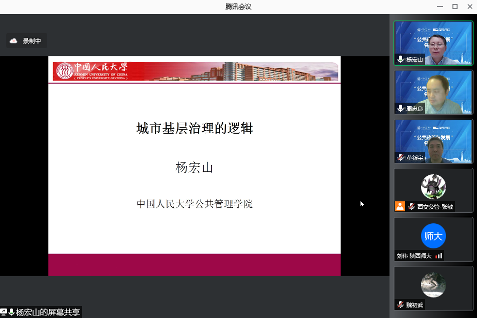 2022年1月17日晚上7点,我院在线上组织召开了“公共政策与发展”名家讲坛,邀请中国人民大学公共管理学院副院长杨宏山教授做了题为“城市基层治理的逻辑”的讲座报告,学院本科生、研究生及校内外师生共计360余人线上聆听了此次报告,本次讲座由学院执行院长周忠良教授主持。