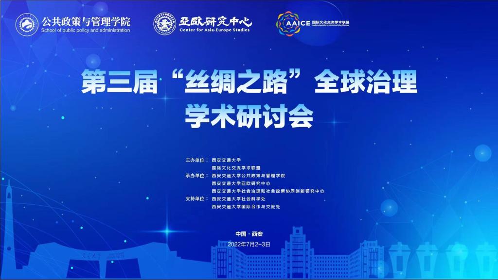 7月2日至3日,由西安交通大学、国际文化交流学术联盟联合主办,西安交通大学公共政策与管理学院、亚欧研究中心、社会治理与社会政策协同创新研究中心承办,社会科学处、国际合作与交流处支持的第三届“丝绸之路”全球治理学术研讨会在西安交通大学举办。本次会议以线上线下相结合的方式进行,累计500余人相聚“云端”。