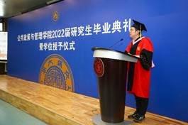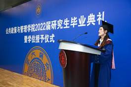 在庄严的国歌声中,毕业典礼正式拉开帷幕。公管学院党委副书记杜巍对各位毕业生表达热烈的欢迎与祝贺,并介绍了公管学院2022届毕业生就业情况。公管学院2022年共有毕业生147人,其中全日制硕士研究生39人,非全日制硕士研究生104人,博士研究生4人。已毕业学生中,全日制硕士、博士就业率均达到100%,其中有10名硕士分别录取为各省市地区选调生。