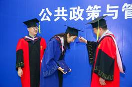 在庄重神圣的学位授予环节,朱正威教授、董新宇教授、张思锋教授、杜海峰教授、王立剑教授分别为博士、硕士和MPA毕业生颁授学位证书,并合影留念。