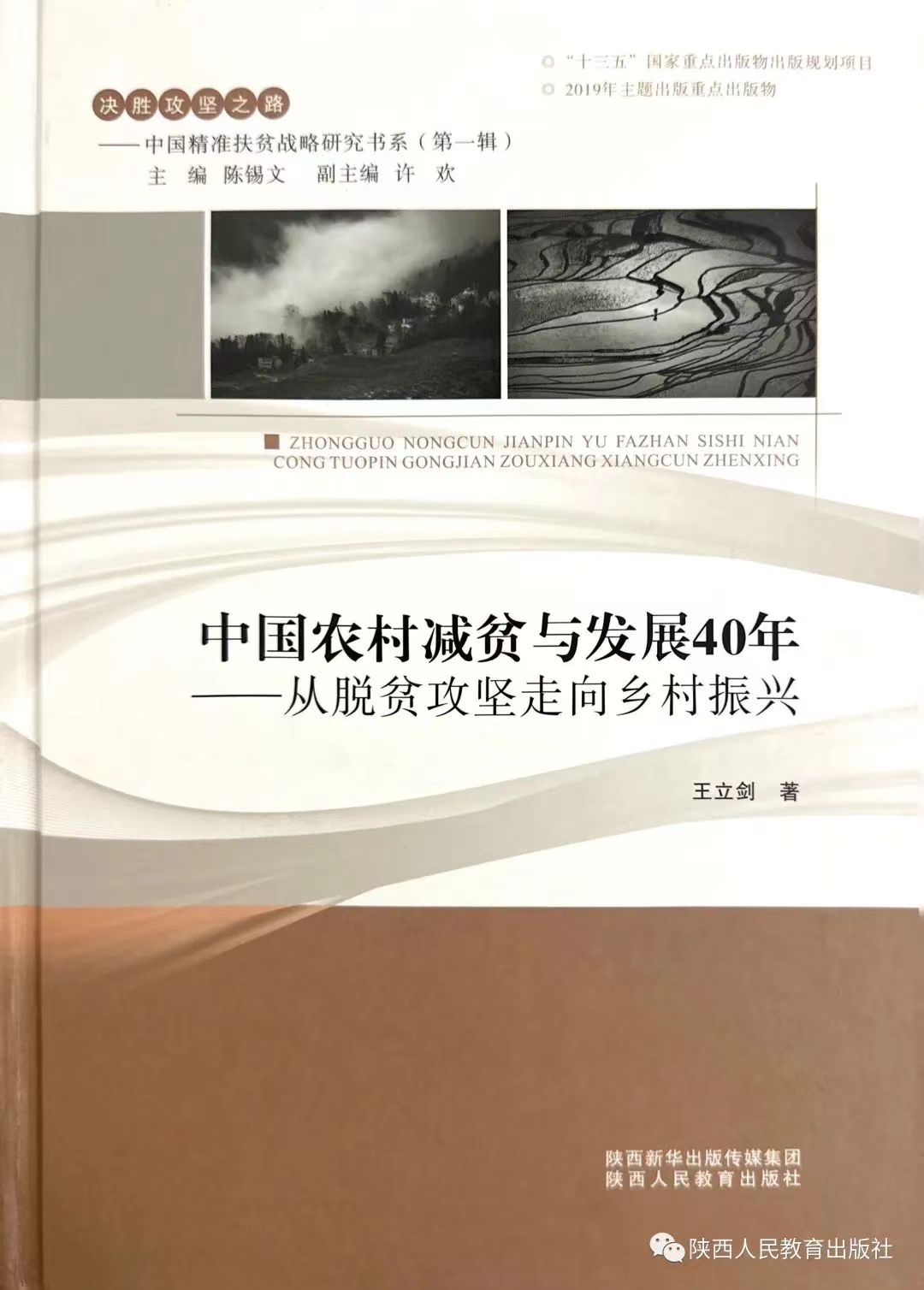 近日,中共陕西省委宣传部印发表彰决定,对陕西省第十六届精神文明建设“五个一工程”组织工作先进单位和优秀作品进行表彰。其中,我院公共政策与管理学院王立剑教授出版的专著《中国农村减贫与发展40年——从脱贫攻坚走向乡村振兴》获优秀作品奖。