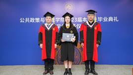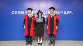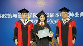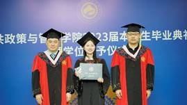 在庄重神圣的学位授予环节,董新宇教授、郭雪松教授和周忠良教授、吕书鹏副教授分别为行管系和社保系的本科毕业生颁授学位证书,送上学院精心准备的毕业生纪念品并合影留念。