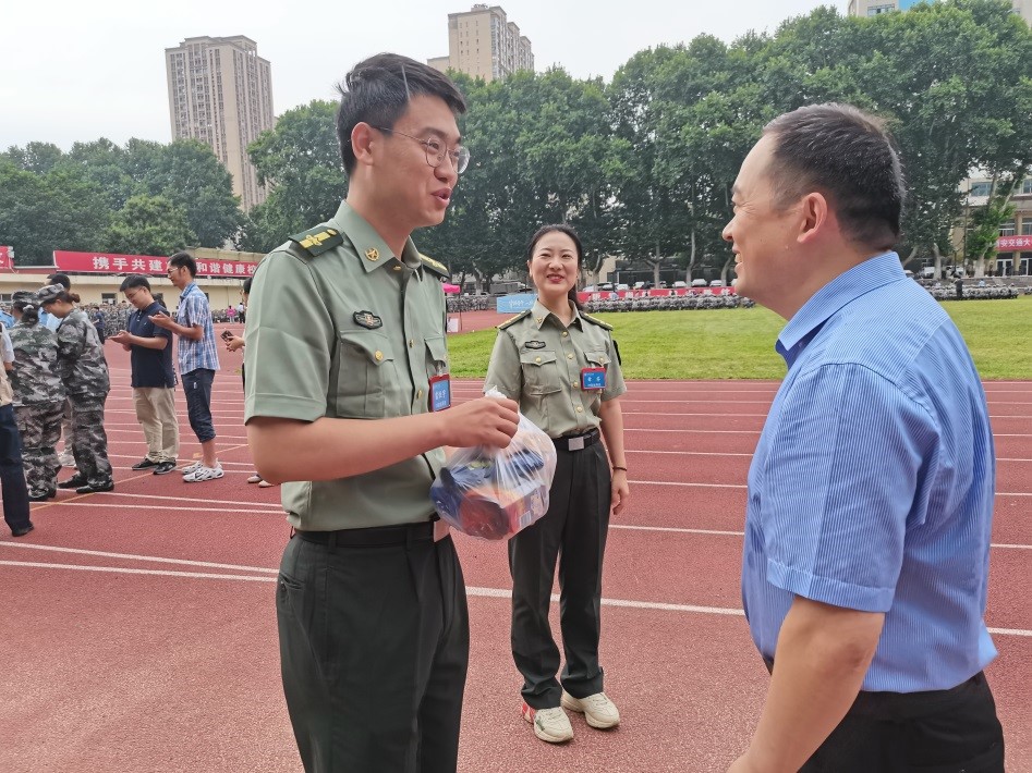 马瑾首先介绍了参加此次慰问的学院领导和老师。董新宇代表学院向承担此次承训任务的各位教官表示衷心的感谢并致以崇高的敬意,向始终服务在第一线的带队干部和全体同学表示诚挚的问候。希望大家把军训中所铸造的钢铁般的意志、脚踏实地的顽强作风和铁的纪律内化成个人品质,并将它带入今后的学习、生活之中,争做西迁精神新传人。