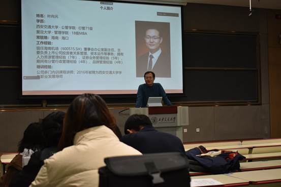 本次讲座邀请西安交通大学学生职业发展导师、公管学院2007级本科生校友、海南机场董事会办公室副主任叶向元为主讲嘉宾,由公共政策与管理学院孙佳欣主持,全校部分学生代表参加。
