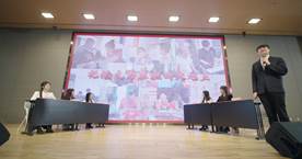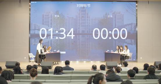 随后,主持人曹欣雨介绍了本届大赛决赛的流程。决赛以甲乙两队分组对辩的形式展开,一组比赛共分为三个阶段:案例陈述环节、对辩环节和评委提问环节。以严格的时间控制要求和案例分析专业性要求,全面考察参赛选手的专业分析素养、语言表达能力、提问应答水平和团队协作能力。
