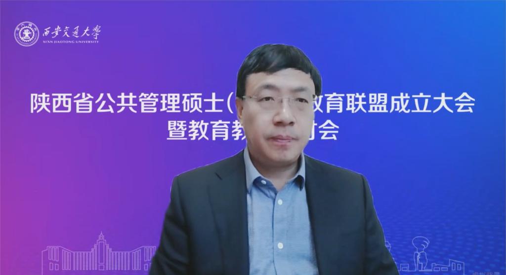 全国MPA教育指导委员会秘书长、中国人民大学公共管理学院院长严金明教授在线上发表讲话,他提到:陕西省公共管理硕士(MPA)教育联盟的成立是推动省内公共管理硕士(MPA)教育互动交流的重要教研平台。希望陕西省公共管理硕士(MPA)教育联盟兄弟院校的各位专家、学者为陕西省公共管理专业建设和学科发展把脉定向,打造陕西省公共管理学科品牌,为国家培养更多堪当民族复兴大任的高素质、专业化公共管理人才贡献智慧和力量。