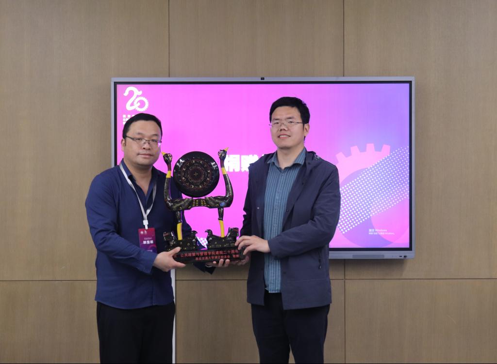 2004级本科校友捐赠仪式学院张嘉泽老师主持,公管学院副院长郭雪松、组织员薛宇红、教师代表毛瑛、孟凡蓉等以及20余名2004级本科校友参加仪式。就职于武汉市青山区发改局的2004级本科校友朱绪乐,代表湖北校友会捐赠文化产品 –“虎座凤架悬鼓”和字画,祝福学院在建院20周年后,以新的起点在中国式现代化发展中能够发出重大的声音;在国内政府治理发展领域引领潮流、筑民于心。