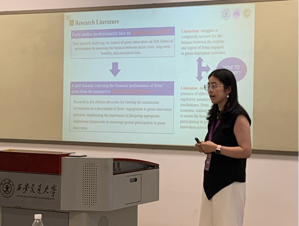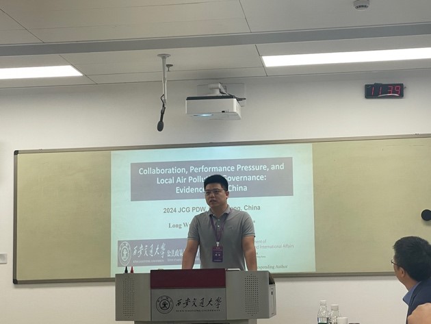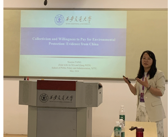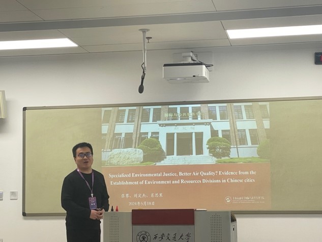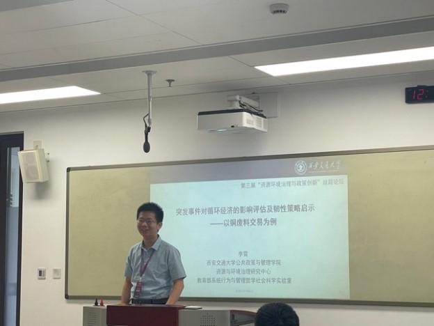 分论坛二由西北工业大学管理学院教授、副院长贾明主持。上海交通大学国际与公共事务学院副教授张攀作了题为Specialized environmental justice, better air quality? Evidence from the establishment of environment and resources divisions in Chinese cities的报告;西安交通大学公共政策与管理学院助理教授、资源与环境治理研究中心主任助理武龙作了题为Collaboration, Performance Pressure and Local Air Pollution Governance: Evidence from China的报告;香港中文大学(深圳)副教授张鹏的博士生苏丹代为作了题为Nutrition and Child Development: Evidence from the Student Nutrition Improvement Program的报告;西安交通大学公共政策与管理学院教授、资源与环境治理研究中心研究员李霄作了题为《突发事件对循环经济的影响评估及韧性策略启示--以铜废料交易为例》的报告。