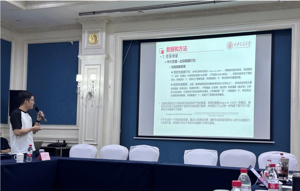 博士生李志彬在分论坛“人口发展、数字经济和智慧养老”进行了题为“互联网使用对中国中老年人健康的影响研究——主动健康行为的中介作用”的口头汇报,该研究利用2018年中国健康与养老追踪调查数据,在人口老龄化与数字化融合交织的背景下探讨了中老年人互联网使用行为对其身心健康的影响效应,检验了主动健康行为的关键中介作用。在口头汇报期间,点评专家与相关学者就论文内容进行了深入地交流,并为文章的优化和改进提供了宝贵建议。