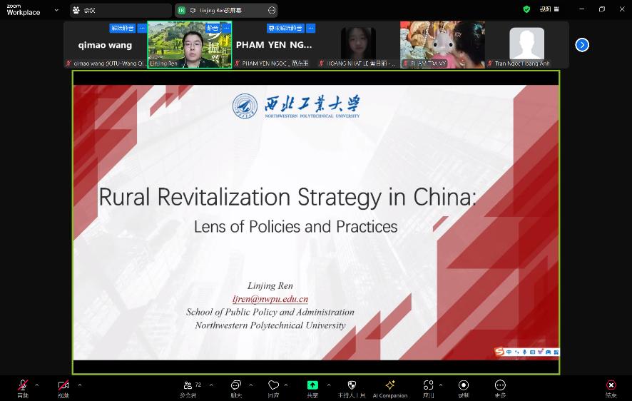 7月19日,西北工业大学公共政策与管理学院的任林静博士带来的讲座主题为“中国的乡村振兴战略:政策与实践的视角”。任博士结合自身研究经验和大量实际案例,介绍了中国乡村振兴战略的实施及其具体实践。在课堂上,学生们就中国乡村振兴政策的实施效果和面临的挑战展开了讨论,任老师耐心解答了学生们的疑问。