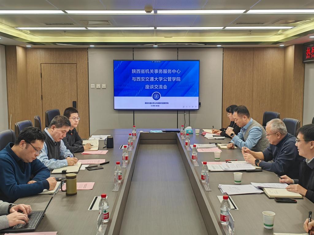 随后,陕西省机关事务服务中心综合管理处处长任彬详细介绍了来访情况和中心的工作职责、业务范围以及近年来的发展动态。任处长表示,中心作为陕西省政府的重要组成部门,承担着为省政府机关提供后勤保障和管理的职责,希望与西安交通大学公共政策与管理学院在理论研究、实践探索等方面开展广泛合作,共同提升机关事务管理的水平和效率。