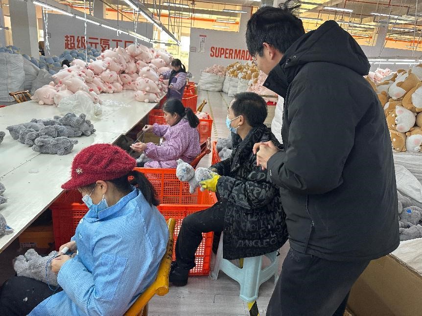 1月16日,在安康市毛绒玩具制作总园区和加工厂,调研队学习了当地“山上兴产业,山下建设区,社区办工厂”的宝贵异地搬迁政策经验,同时倾听一线民工的生活就业情况。小小的毛绒玩具为当地经济蓬勃发展和搬迁农民就业问题注入“萌”动力。下午,调研队将安康市零工市场和技能培训学校作为此行的最后一站。“零工市场+技能培训”的新方式通过提升劳动者专业技能和职业素养,推动了劳动者从“好就业”到“就好业”方向转变,给同学们留下深刻印象。