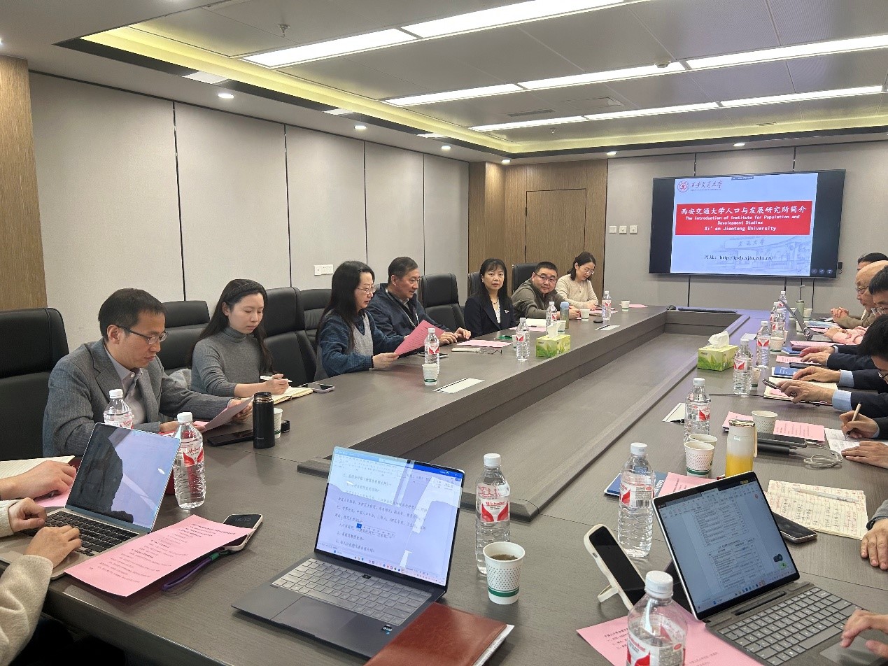 2025年3月12日下午,中国人口学会会长翟振武教授、国家卫健委人口家庭司杨文庄原司长一行赴陕西省调研,与西安交通大学人口与发展研究所及省内多家人口研究机构代表举行专题座谈会。会议在西安交通大学文管大楼674会议室召开,围绕新时代人口发展战略、老龄化社会应对、人口迁移流动趋势、家庭发展支持政策等议题展开深入研讨。座谈会由西安交通大学人口所所长杨雪燕教授主持。