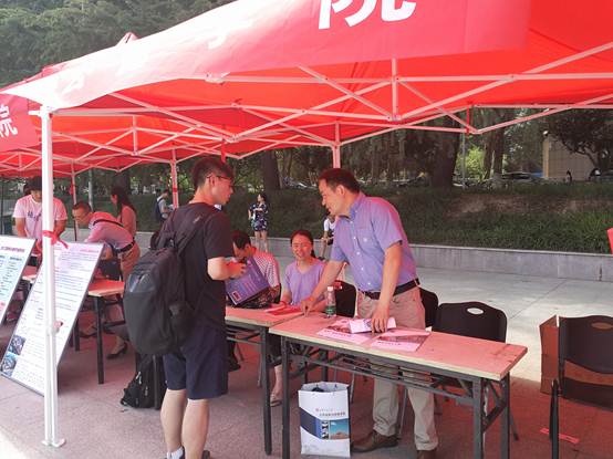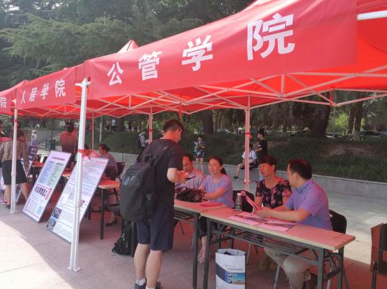 周忠良副院长分别从学院研究生招生和培养情况对前来咨询的学生进行了详细的介绍,展示了学院““学汇百家,公行天下”的理念,以及“中国问题、国际视野、服务社会”的宗旨,吸引了众多前来参观和咨询的学生。