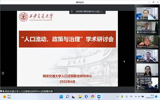 2022年6月24日,由西安交通大学人口迁移联合研究中心举办的“人口流动、政策与治理”学术研讨会,通过线上线下相结合的方式在逸夫外文楼和腾讯会议平台顺利举行。会议邀请了梁在教授(西安交通大学讲座教授、美国纽约州立大学奥尔巴尼分校教授)、方伟晶教授(西安交通大学讲座教授、香港大学社会学讲座教授)、梁玉成教授(中山大学)、杨菊华教授(中央民族大学)、舒玢玢助理教授(深圳大学)和悦中山教授(西安交通大学)进行学术报告。人口迁移联合研究中心主任李树茁教授、石琛副教授、毕静煜老师、王莹老师以及线上线下100余人参加了本次活动。会议分两个单元,单元一由人口迁移联合研究中心副主任悅中山教授主持,单元二由公共政策与管理学院白萌副教授主持。