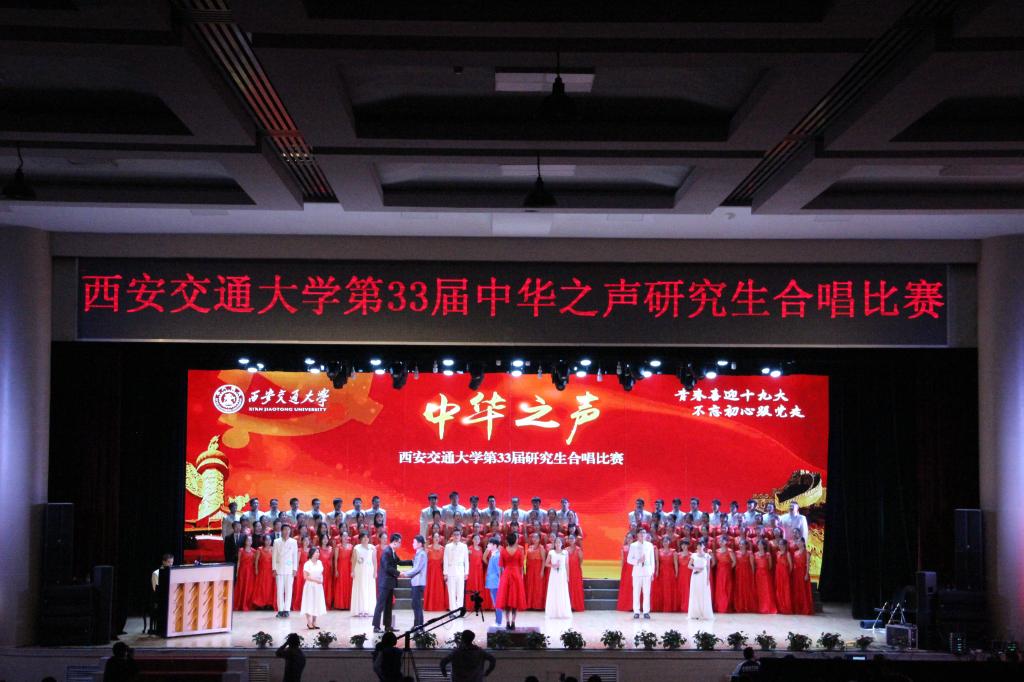 “青春喜迎十九大,不忘初心跟党走”,在十九大召开之际,西安交通大学第33届研究生合唱比赛于于10月16日成功举办。我院联合外国语学院和人居学院组成我们的合唱队伍认真筹备积极参与到比赛中,成绩优秀,收获满满。