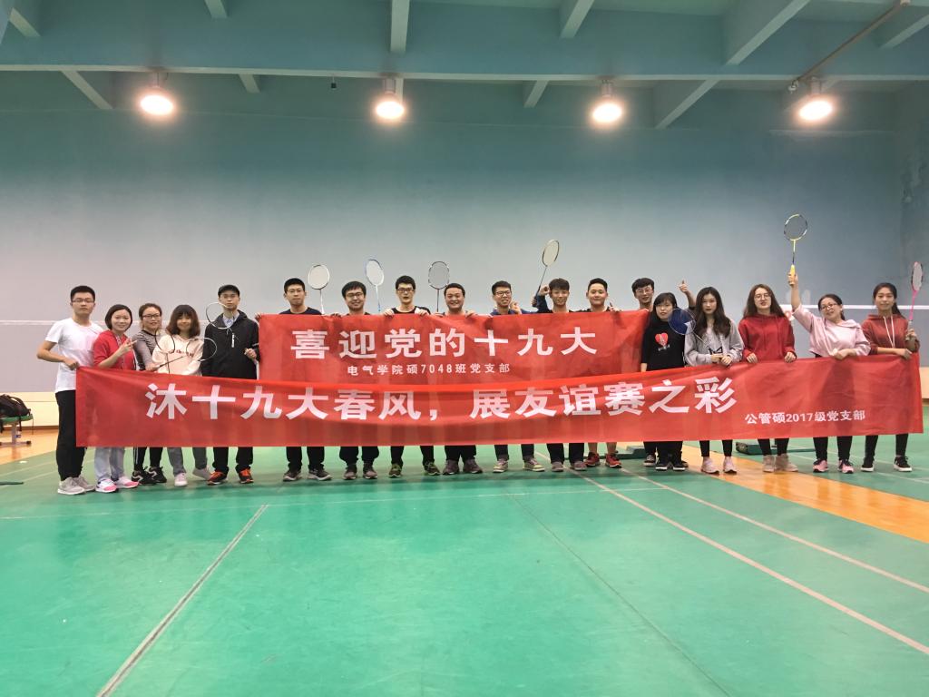 十九大召开以来,硕2017级党支部积极参与十九大专题报告讨论会,认真学习近平总书记报告内容。为进一步贯彻十九大精神,加强党员同志交流,10月22日下午,公管学院2017级党支部与硕7048班党支部在交大体育馆共同组织了一场羽毛球联谊比赛。