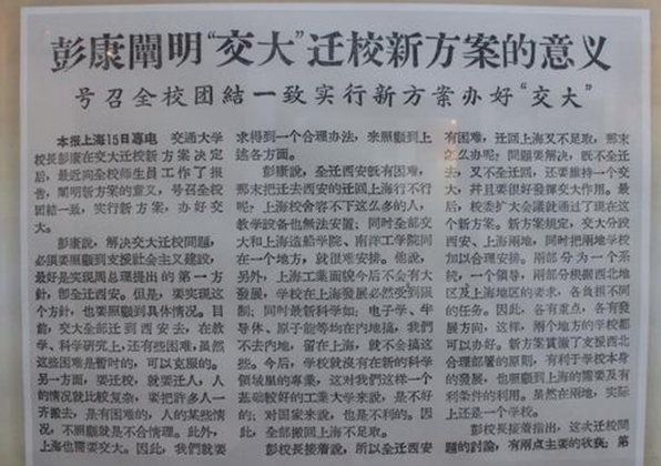 西迁历史纪念馆北楼集中展现了上世纪五十年代交大人从繁华的大上海来到当时仍然比较落后的西安,扎根黄土地,默默付出,开拓奋进,艰苦创业的拼搏历史。