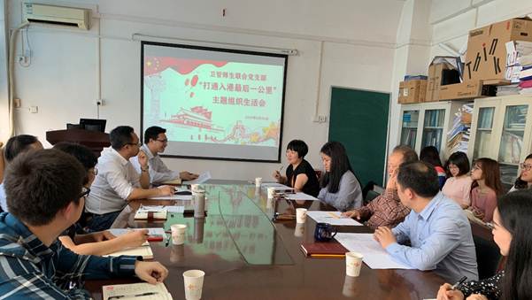 支部书记周忠良同志首先介绍了卫管师生联合党支部党建情况,就支部成立以来所做的工作进行了汇报。周忠良同志表示,成立卫管师生联合党支部对于系所的学科建设、党建工作都起到了至关重要的作用。此外,他还围绕“打通入港最后一公里” 提出了入驻创新港过程中可能面临的挑战以及相应的建议,表达了在推进学科发展和创新港内涵建设的决心。
