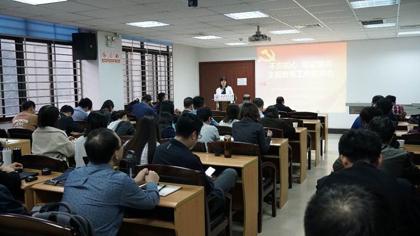 王立剑副书记传达了西安交通大学《“不忘初心牢记使命”主题教育工作实施方案》的部署和学校主题教育工作动员会的精神。