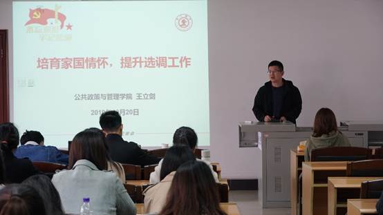 通过调研发现:学生在找工作的时候,往往考虑工资、工作环境、晋升条件等一些现实的条件,却很少能考虑到国家的需要,人民的需要等一些家国情怀。他呼吁在座的党员一定要有家国情怀,同时也要积极了解选调生的工作内容以及选调政策。基层工作需要具备理论与实践知识,更需要具备各种能力,想要选择报名选调生自然也需要很多的能力,包括组织协调能力、人际交往能力等,这些需要我们在研究生阶段参与各种活动去锻炼,这样才有参与选调的基本素质。