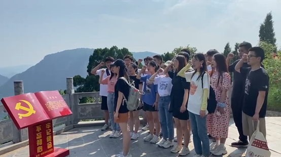 入党誓词是行动指南,是共产党人的座右铭,不断重温,终身践行,前进路上,对照承诺,时时检视自我,不断校正航向,方能行稳致远。重温入党誓词,是增强责任感和使命感,提升组织的凝聚力、向心力和战斗力的重要方式。公共管学院硕2019级党支部成员在红军奋战过的薛家寨重温入党誓词,支部成员不畏炎炎烈日,勇攀高峰,重走红军奋斗路,在山顶上庄严的举行了宣誓活动。