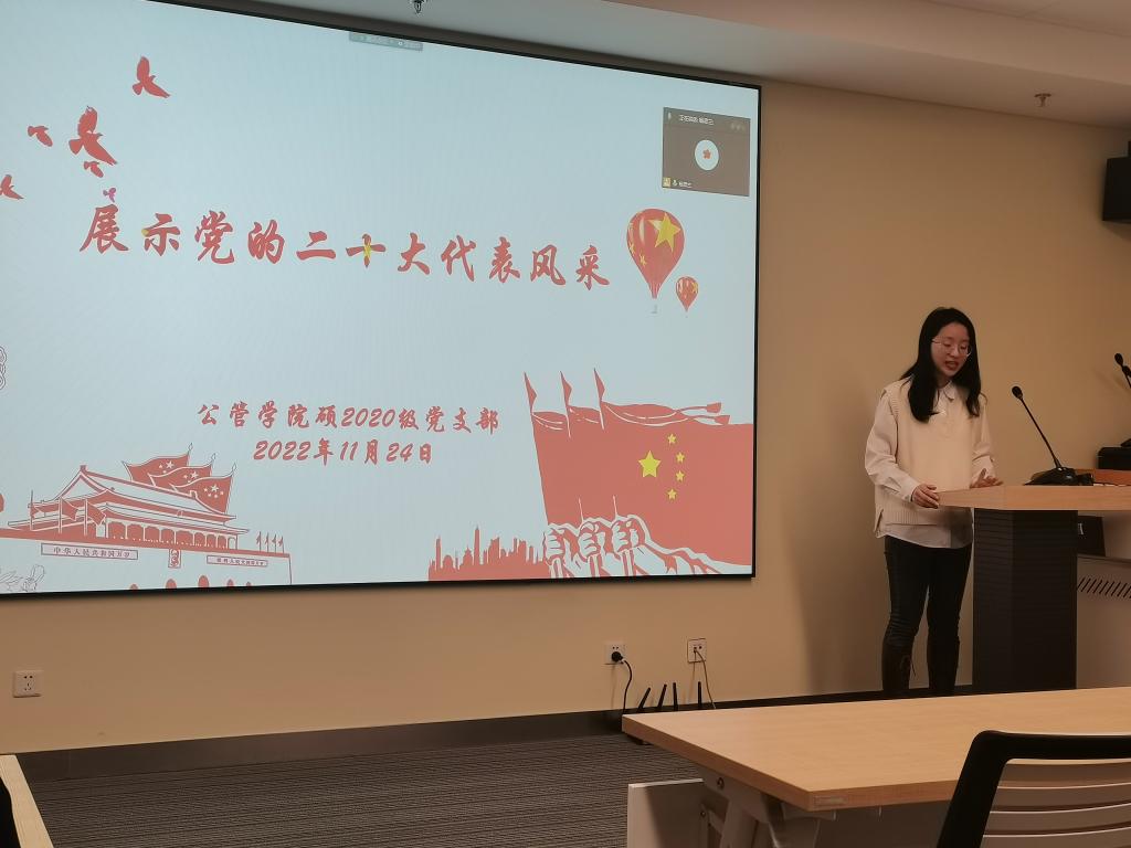 学习宣传贯彻党的二十大精神,是当前和今后一个时期全党全国的首要政治任务。为提高支部党员同志的党性修养,公管学院硕2020党支部于11月24日召开专题党组织生活会。会议邀请党委副书记杜巍老师对二十大内容进行讲解,并辅以党小组对部分党代表的事迹介绍,经长达两小时的学习,会议达到了进一步加强党员同志对二十大内容的了解、理解和吸收的良好效果。